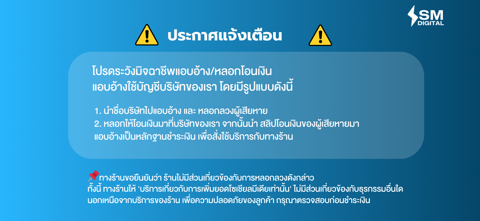 SM digital เราช่วยเรื่องการโฆษณาออนไลน์ทุกแพลตฟอร์ม โดยทีมงานมืออาชีพ คุณจึงมั่นใจได้ว่า บริการของเราจะช่วยเพิ่มฐานลูกค้าให้คุณได้แน่นอน